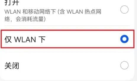 4、最后选择“仅WLAN下”更新就可以了。