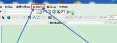 arcgis无法执行所选工具方法1、首先打开软件,找到菜单栏顶部“自定义”按钮,点击。