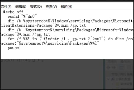 找到后写入到gp.txt文件,然后通过dism命令来安装组策略包。