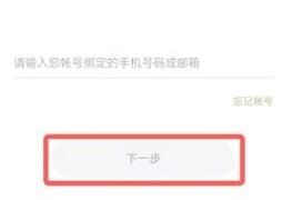 3、输入绑定的手机号或邮箱账号,点击"下一步"。