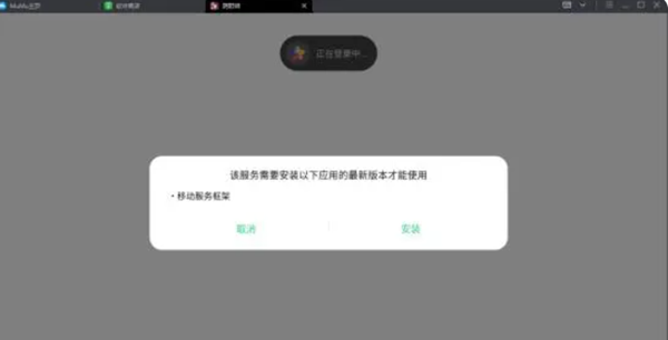 3、按照提示操作安装移动服务框架,重启游戏,登录账号后即可正常游戏。