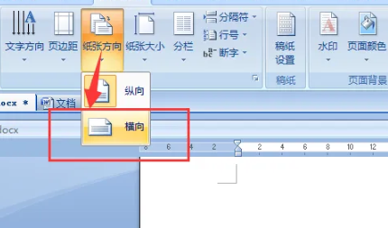 3、在"页面布局"下方找到"纸张方向"按钮,选择"横向",纸张方向设置为横向打印。