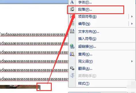 2、将光标置于图片末尾,点击鼠标右键,选择"段落"选项。