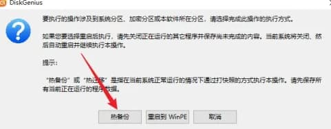 6、在提示框中点击“热备份”按钮,开始进行备份操作。