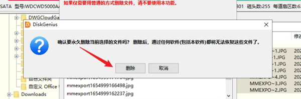 4、在确认对话框中,点击“删除”按钮,彻底删除选定的文件。