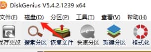 2、然后,在DiskGenius软件,打开磁盘菜单;