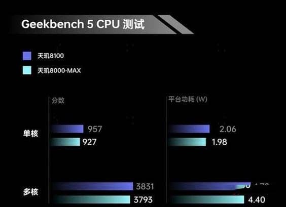 3、天玑8000max是天玑8100的降频版本,CPU的大核心主频降低了0.1GHz。