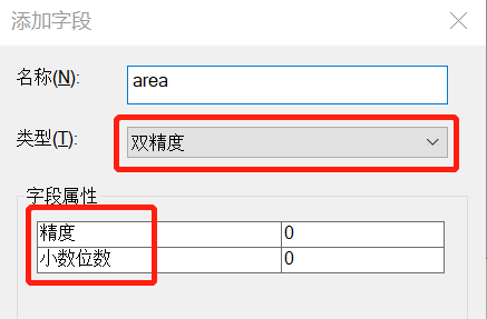 发生arcgis计算几何面积禁用这种情况的原因可能是,在添加字段选择类型错误,可以将类型选择双精度,字段属性默认,然后点击确定尝试,详情如下。