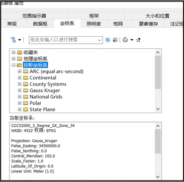 3、接着选中数据框右键点击“属性”,选择合适的“投影坐标系”,完成点击“确定”。