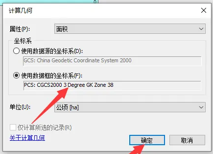 5、然后选择投影坐标系进行计算,设置单位点击“确定”即可。