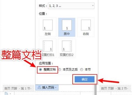 3、然后在弹出的界面中选择“整篇文档”再点击确定。