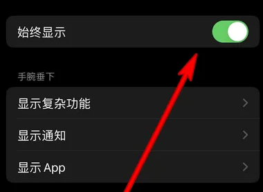 4、最后把“始终显示”的按钮打开,就可以让屏幕常亮了。