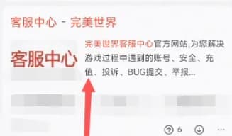 2、搜索关键词"完美世界客服中心",点击进入对应的搜索结果。