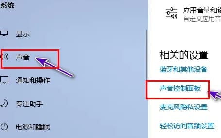 2、接着点击“声音”,然后点击“声音控制面板”。