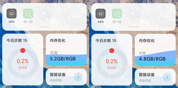 2、根据测试,开启内存扩展后,8GB运行内存可用空间从4.8GB提高到了5.2GB。