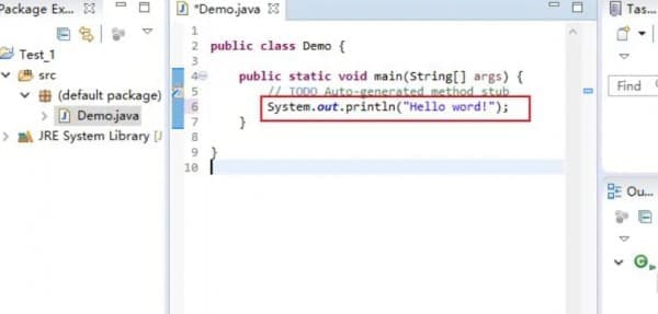 main函数中,输入这行代码:System.out.println("Hello word!");