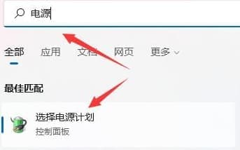 4、随后我们可以打开搜索功能,搜索“电源”然后打开“选择电源计划”。