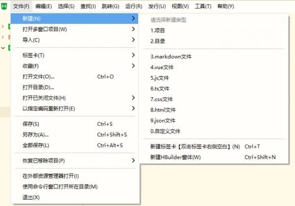 2、在HBuilder中创建一个新的项目,或打开您已有的项目。