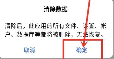 4、点击"确定"按钮,清除应用数据后,即可恢复网络连接。