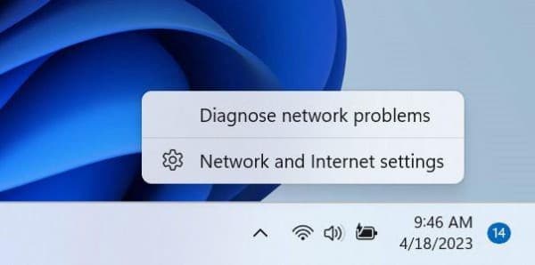 右键单击系统托盘中的网络图标之后,微软添加了诊断网络问题的选项。