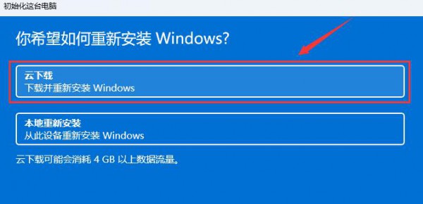 6、你希望如何重新安装 Windows?点击【云下载(下载并重新安装 Windows)】。