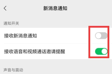 4、将“接受语音和视频通话邀请提醒”和“接收新消息通知”后面的开关打开即可。