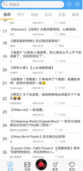 轻音社上传音乐方法1、打开听歌界面,点击右上方的"列表"图标。