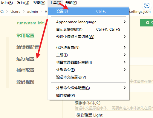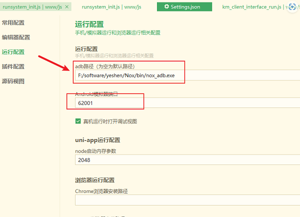 hbuilder连接夜神模拟器详情教程1、首先,打开“设置”,选择“运行配置”选项。