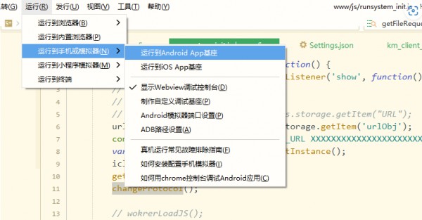 8、保持夜神模拟器和hbuilder开启,再hbuilder中选择运行到手机或模拟器。