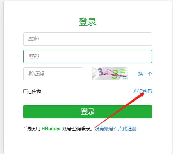 hbuilder密码找回教程1、打开HBuilder登录页面,并点击"忘记密码"链接。