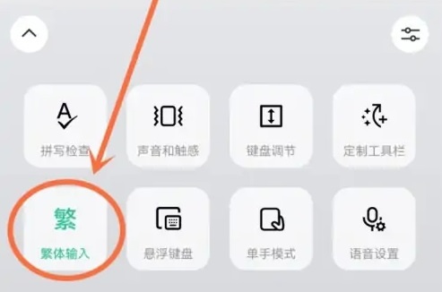 2、在唤出的功能面板上,我们点击繁体输入。