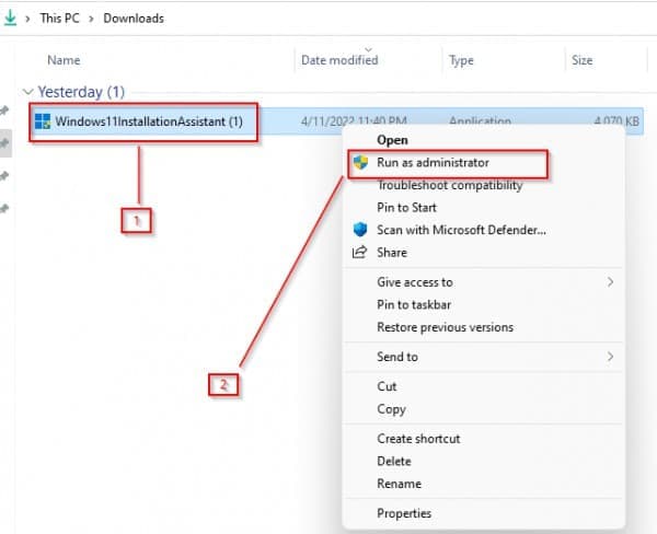 7、转到下载的文件,右键单击它,然后点击以管理员身份运行。