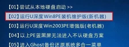 3、选择【02】运行U深度Win8PE装机保护版(新机器),按回车键确认。