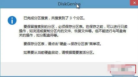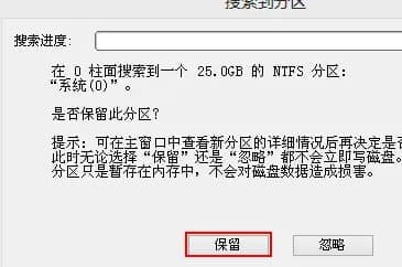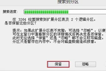 6、进行查找分区任务后,直接点击"保存"按钮进行下一步操作。如果找到逻辑分区,会弹出提示窗口,直接点击"保存"按钮。