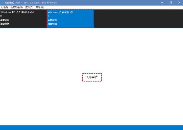 3、在工具界面切换到电脑上的Windows 10操作系统,并点击"打开会话"。