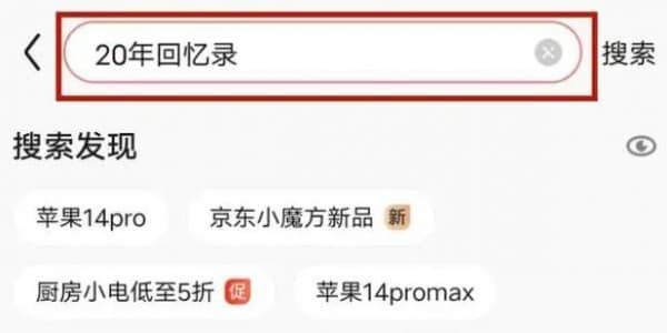 京东20年回忆录详情1、在京东页面的搜索栏上输入“20年回忆录”