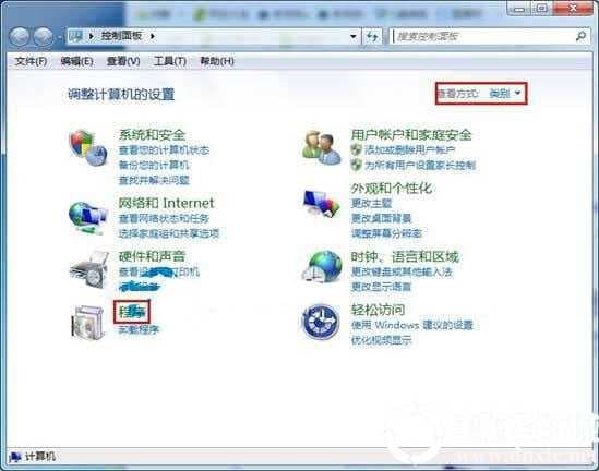 2、在这里对于查看的方式进行设置为类别,然后找到程序选项进行点击。