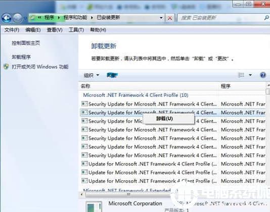win7电脑更新卸载程序方法