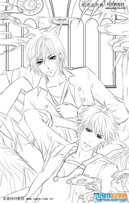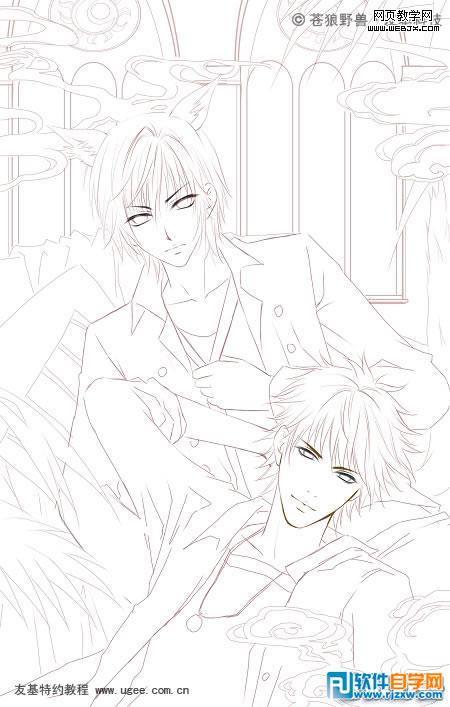 | 2、整理线稿。擦除多余的线,将线条清晰明了的画出来,然后保存进PS里调整颜色。有些笔会带有橡皮,但我觉得那个并不常用到,也不太方便。以前我的线稿都是在CS里描的,其实PS和PT也都可以,CS是画黑白的专业软件,单纯的线稿不一定要在CS里才可以,我用的还是PT里的覆盖铅笔。 |