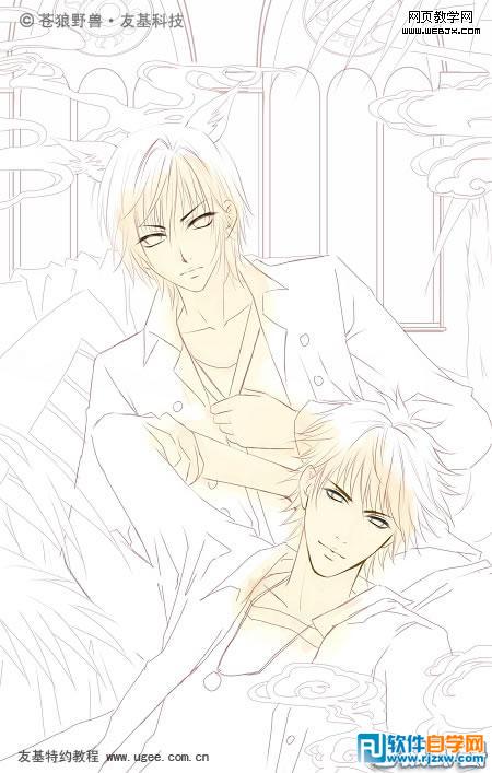 | 3、接下来就可以保存进PT上色了,在PT中打开该图,使用油性蜡笔铺上皮肤色。 |
