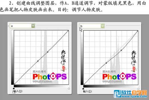 | 1、打开原图,选择菜单:图像 > 模式 > Lab颜色,创建曲线调整图层,参数设置如下图。 |