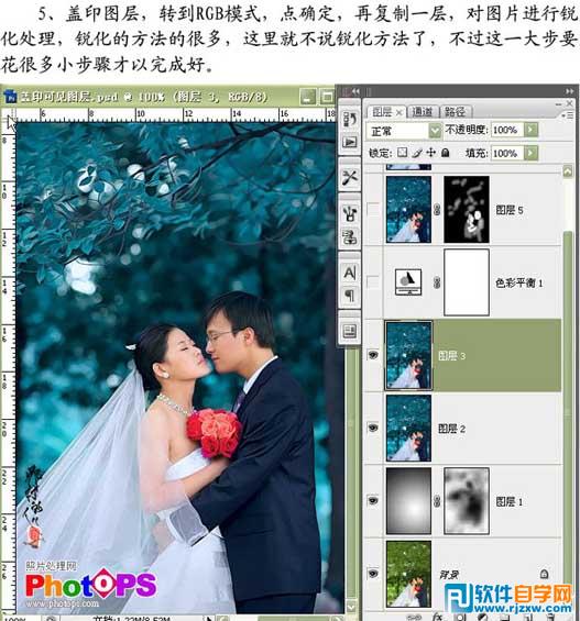 | 5、盖印图层,选择菜单:图像 > 模式 > RGB颜色,确定后再复制一层,对图片进行锐化处理。 |