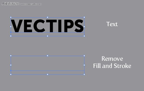 2.使用文字工具(T),输出文字。我的是100pt的大标题字,但你可以调整文字以适合你的需要。然后,移除文本的填色和描边,我们之后会在外观面板里直接调整。