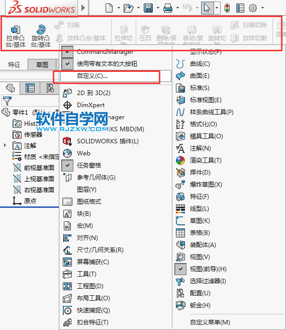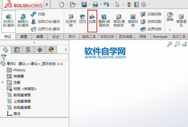 以上介绍的是slolidworks加厚按钮怎么显示出来的方法,希望能帮助到大家,请大家继续关注软件自学网。