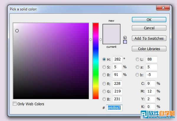 | 2、去图层>新建填充图层>纯色(#e4dbe7)。 |