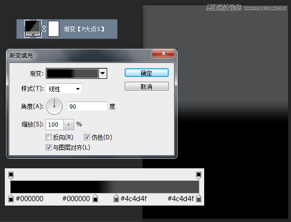 创建一个渐变调整层,#4c4d4f到黑色的渐变,参数如下: