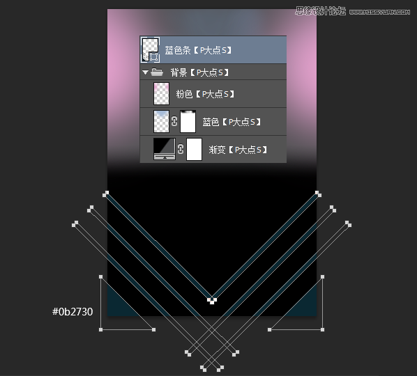 接下来,我们添加左上两侧的颜色,这里我用的粉色#e7a3d0,比原图亮了不少。