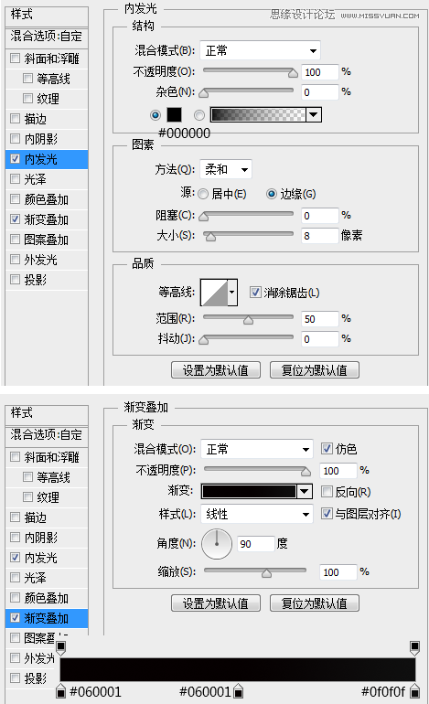 为这个正方形添加一个内发光,一个渐变叠加。并将图层不透明度调整为88%