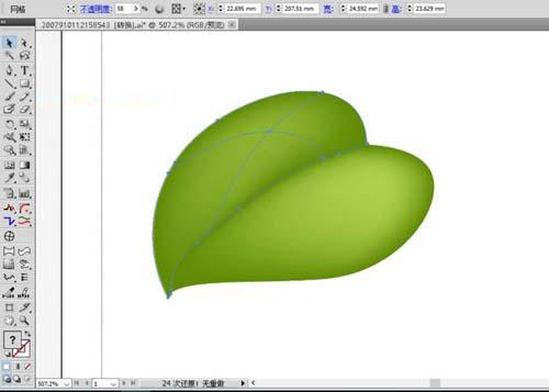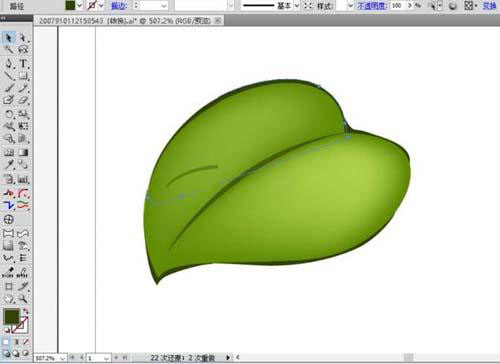 第1步、先用路径画出一片绿叶的基本轮廓再用网格渐变的方法填充,让其成为一片有着明显色调变化的绿叶感觉。