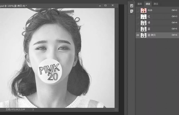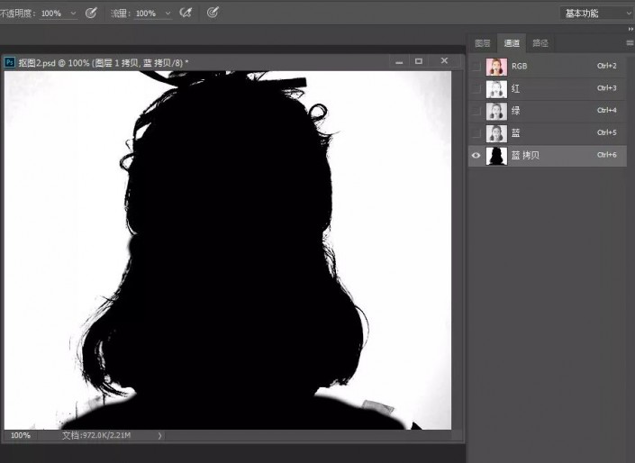 进入通道,选择黑白对比最强的一层复制,我的是蓝色那层,根据不同选择不同